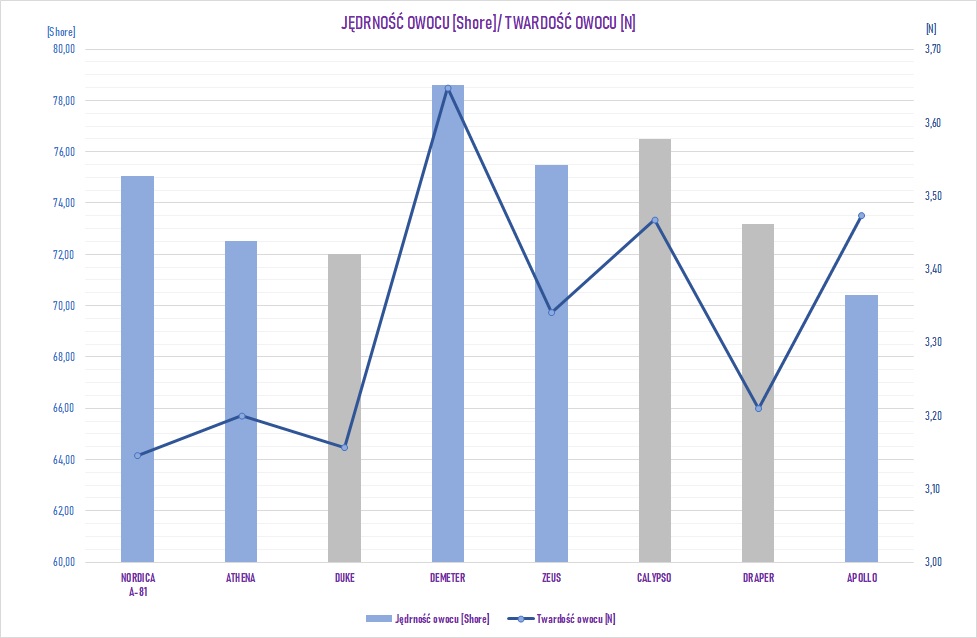 Twardość owocu [N]Jędrność owocuBRIXTermin zbioru